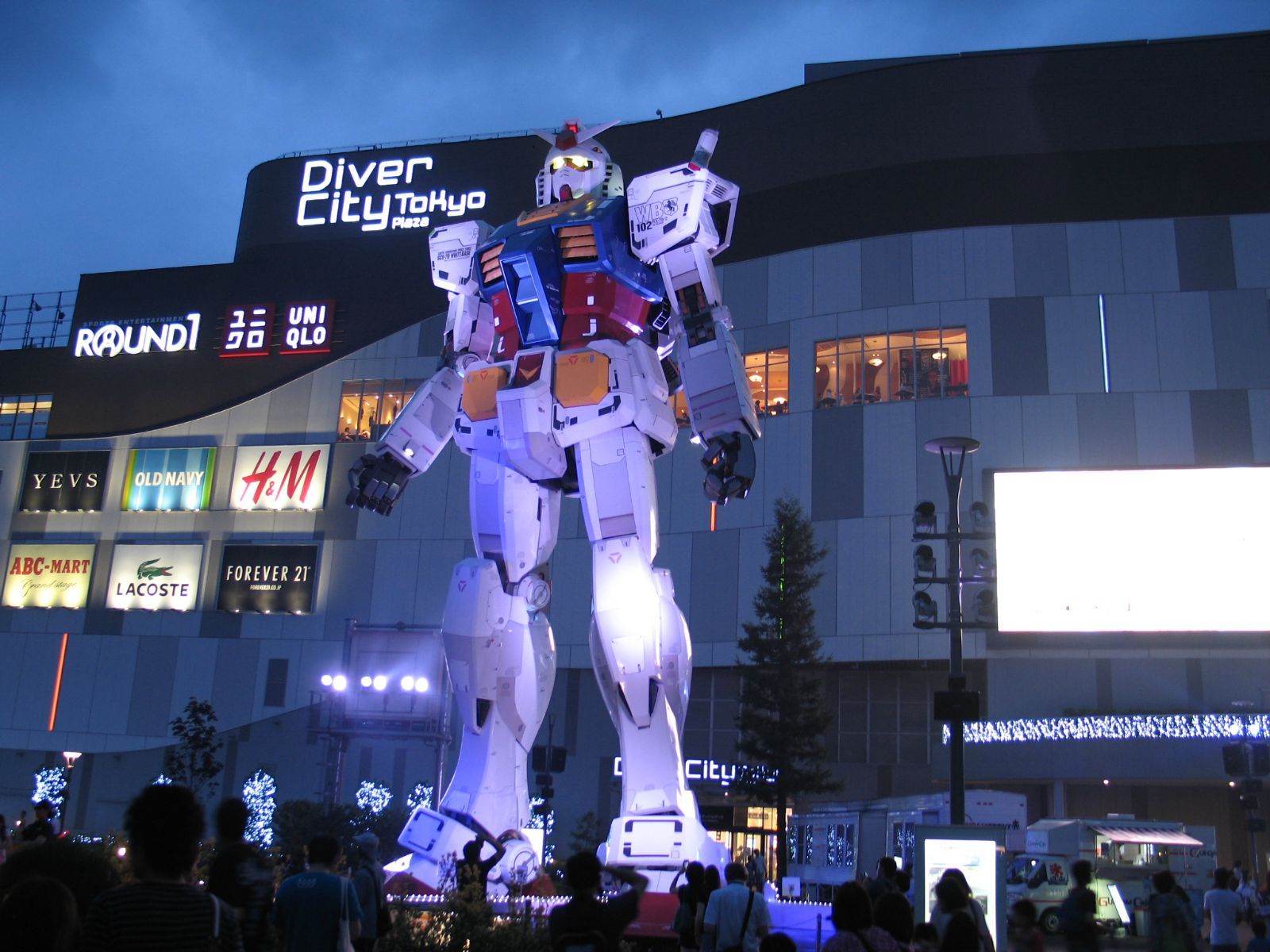 【DiverCity Tokyo Plaza购物城】:2012年4月19日全新开幕营业,位在台场著名地标富士电视台正后方,由日本三井集团兴建的,共拥有9层楼、154家店铺,包括:「H&M」、「ZARA」、「FOREVER21」、「Bershka」、「UNIQLO(ユニクロ)」及「American Eagle Outfitters・Aerie」、「ARMANI JEANS」、「BURBERRY BLUE LABEL」、「BURBERRY BLACK LABEL」、「BEAMS」等多家日本与世界的知名服饰品牌。另外备受注目的是户外广场所展示高18公尺的大型机动战士『钢弹』模型,已成为台场的新地标!