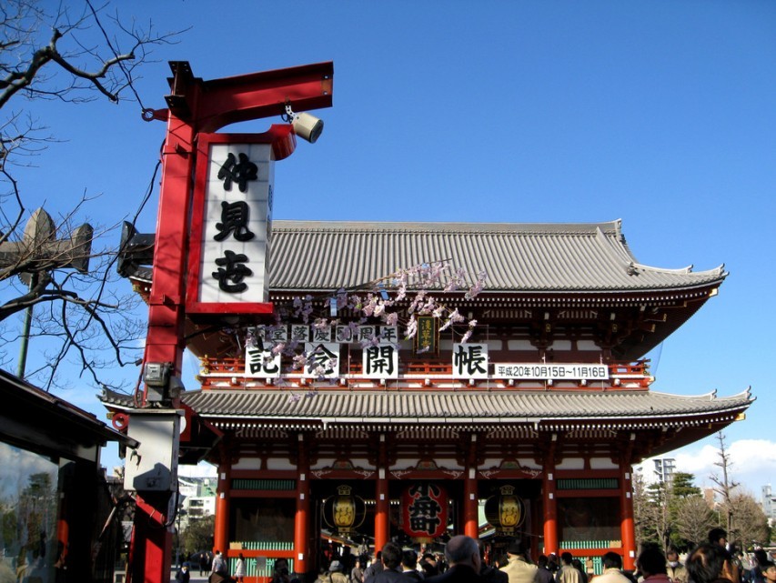 【浅草】(停留时间大约为45分钟左右),高高挂着『雷门』灯笼的正是香火鼎盛的【浅草寺】,有络绎不绝的香客前来朝拜,寺前传统老街【仲见世通】,有展售日本传统的人形、饰物、糕饼…等,令人玩味。